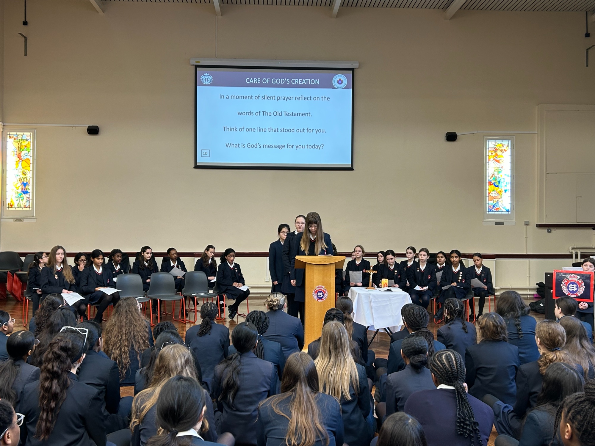 Throughout the assembly, students reflected on the message from Genesis 2:15, where God entrusts humanity with the responsibility to “work and take care” of the world. They explored how caring for creation is not only about looking after nature, but also about treating each other with dignity, respect, and kindness, recognising that every person is made in the image and likeness of God.