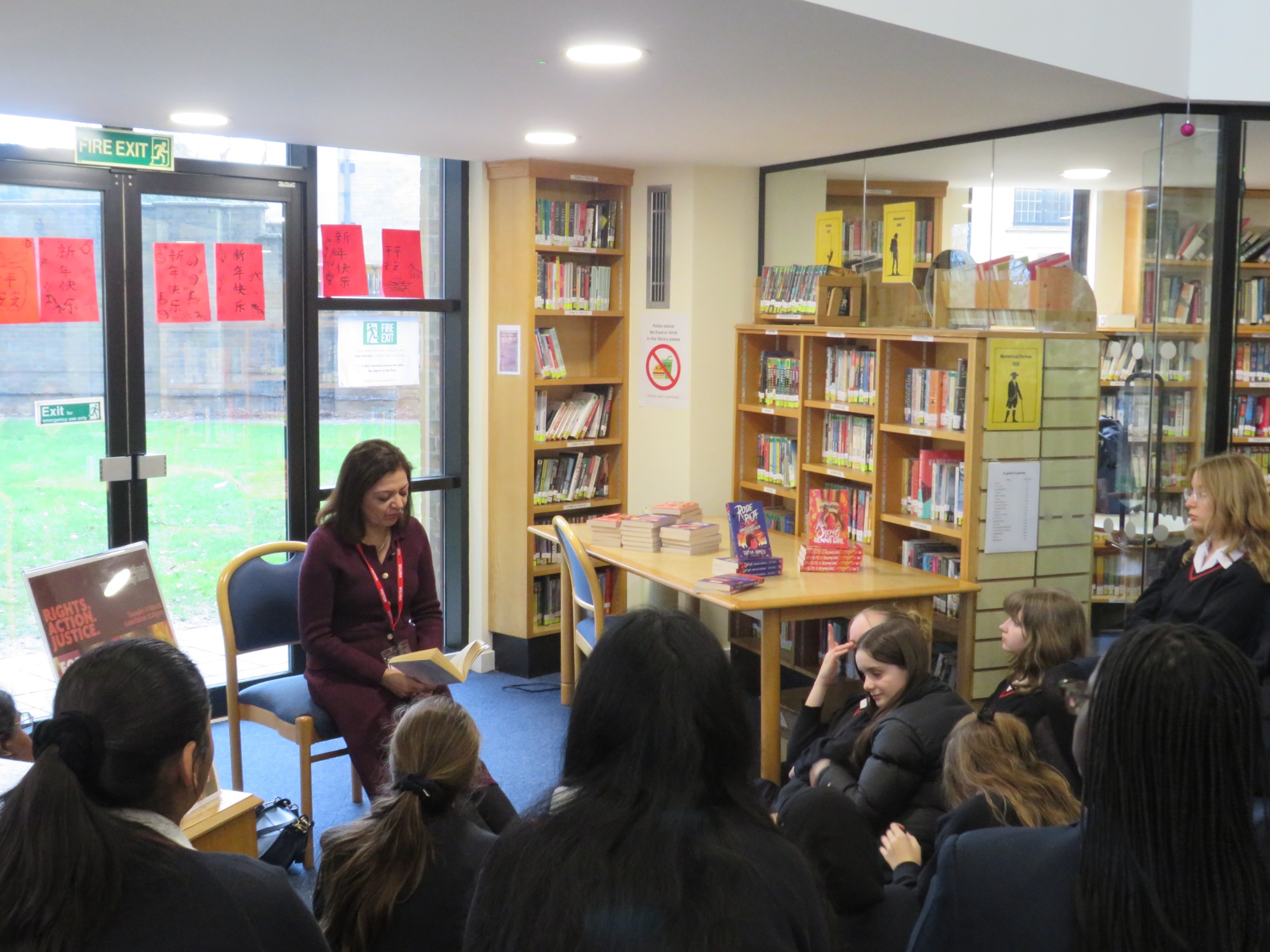 During lunch, our students had the wonderful opportunity to meet Sufiya in a more informal setting. They asked thoughtful questions and enjoyed listening to her read an extract from one of her works.