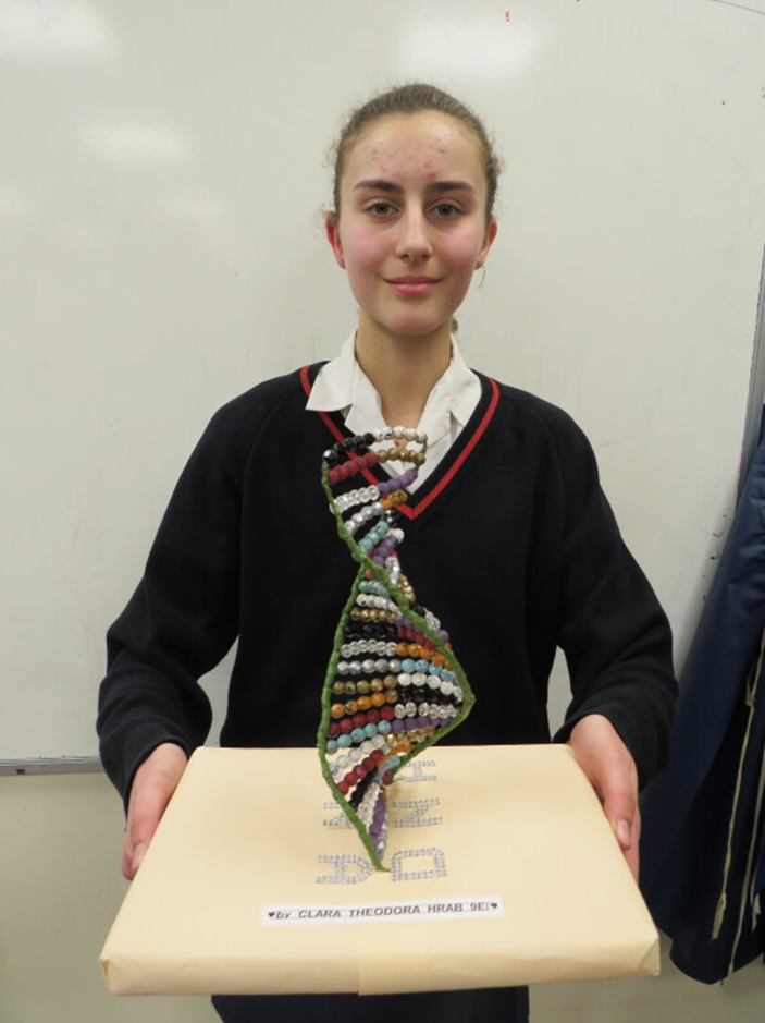 Meanwhile, Year 9 pupils took on the challenge of designing and presenting their own DNA models. A big well done to Clara (9E), Mia (9H), and Natalia (9T) for creating exceptional models. These were proudly showcased to Year 7 pupils during Science Club, where the younger students then had the exciting opportunity to extract DNA from strawberries. Seeing real DNA was a highlight for many and created a real buzz of excitement!